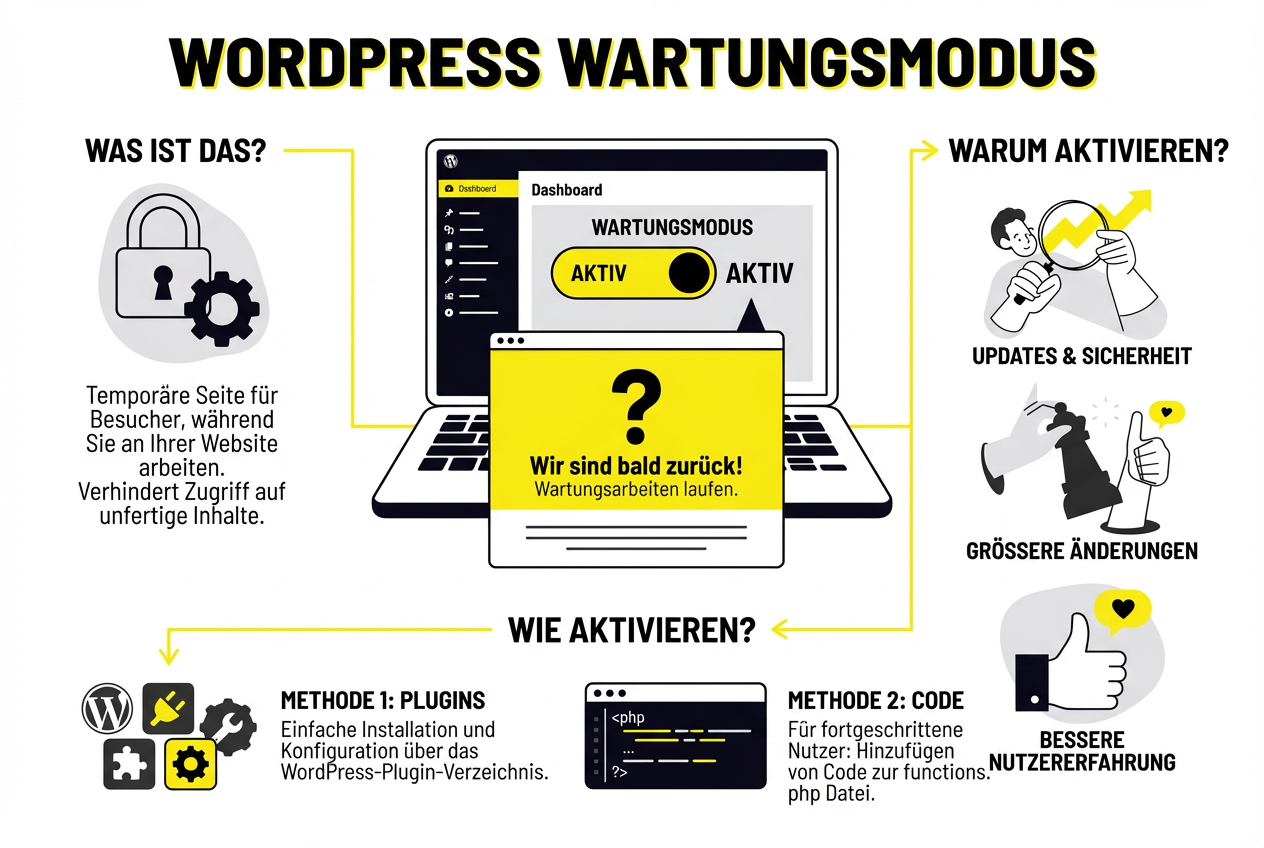 - Der Wartungsmodus ist für Besucher meist nur kurz sichtbar